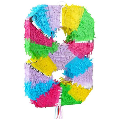 Korosztály: 8 és 99 év közöttHányan játszhatják: 1 játékos 8-as szám formájú pinata születésnapi bulikhoz, évfordulókhoz. Csak meg kell tölteni cukorkákkal, felakasztani egy kampóra, szögre vagy faágra, majd egy bottal vagy seprűnyéllel addig ütögetni, amíg a papírmasé megadja magát, és az édességek a földre potyognak.A játék használata felnőtt felügyelete mellett ajánlott. A pinata maximum 1 kg cukorkával tölthető meg.A csomag cukorkákat nem tartalmaz