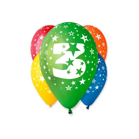 Gumiból készült, 3-as számot ábrázoló mintával ellátott lufik, vegyes színekben. A készlet 5 db lufit tartalmaz, ezekkel feldobhatod a saját vagy barátaid buliját! Csomagolás méretei: 14 x 20 x 3 cm