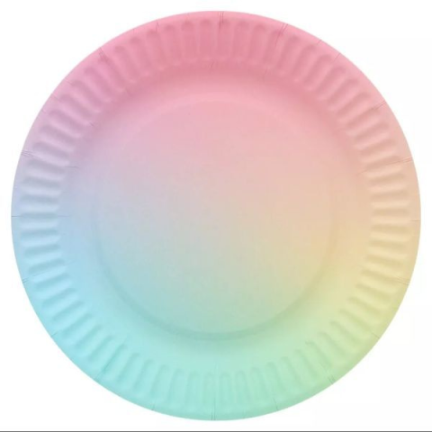 Imádnivaló, igazán stílusos, szivárvány mintás papírtányér szett születésnapi, névnapi bulikra vagy tematikus mulatságokra - hogy ne kelljen a nagy napon annyit mosogatni.A csomag 6 darab papírtányért tartalmaz.Anyaga: papírA tányérok átmérője: 18 cm