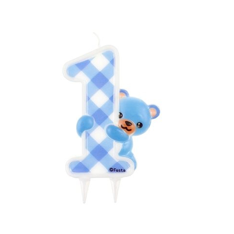 1 kép Godan Születésnapi gyertya, 12cm, mackó, "1", kék