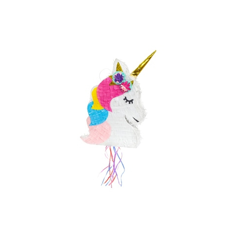 Ez az unikornis alakú pinata egészen biztosan feldobja az egyszarvúkért rajongó gyerekek születésnapi partiját. Csak fel kell tölteni a nyíláson keresztül cukorkákkal, édességekkel vagy apró (nem törékeny) ajándékokkal, aztán fellógatni egy fa ágára. Az ünnepeltnek bekötött szemmel kell eltalálnia az unikornist egy bottal, amiből aztán aláhullanak a finomságok. A pinatában nem található édesség, cukorka. Mérete: 40 x 7,5 x 32 cm