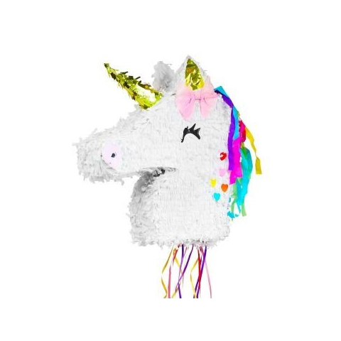 Ezzel az aranyos unikornis pinatával még különlegesebbé tehető a születésnap vagy összejövetel. A fehér egyszarvú megtölthető mindenféle édességgel vagy apró meglepetéssel, amit egy bottal tud az ünnepelt szétütni, bekötött szemmel. A pinata egy zsinórral fellógatható bárhová. Anyaga: karton és krepp papír.