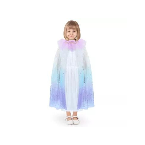 Varázslólány köpeny csillagokkal. Tépőzárral rögzíthető. A cipő és a fehér ruha nem tartozék. Anyaga: 100% poliészter A köpeny hossza: 71 cm