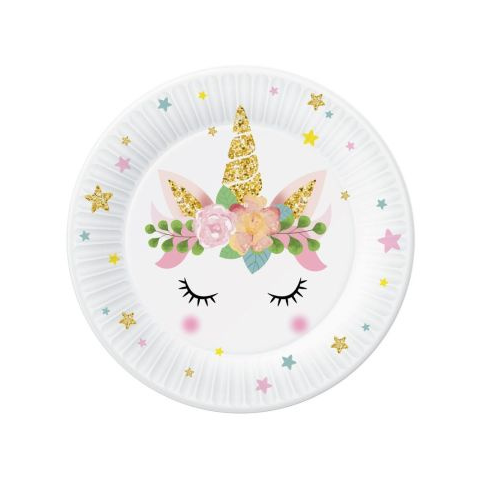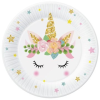 Pasztell színű, aranyos, csukott szemű unikornis mintával ellátott papírtányér szett születésnapi, névnapi bulikra, tematikus mulatságokra, hogy ne kelljen a nagy napon annyit mosogatni. A csomag 6 darab papírtányért tartalmaz. A tányér átmérője: 18 cm