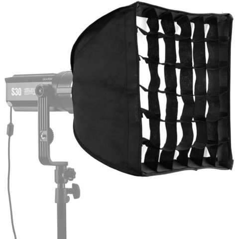 Godox Softbox + rács 30x30cm A Godox Softbox + Grid 30x30cm kifejezetten a Godox S30 Focusing LED Spotlighthoz készült. Könnyű, hordozható és könnyen beállítható. A softbox lágyabbá teszi a fényt. A softboxhoz egy rács és egy puha kendő tartozik. Mérete