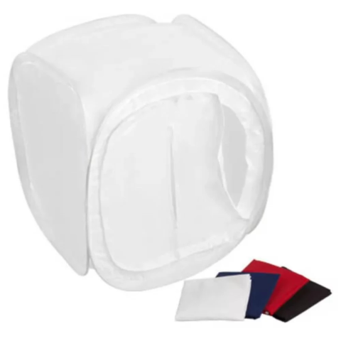 80 cm-es fehér színű tárgysátor. Segítségével kiváló minőségű, esztétikusan megvilágított tárgyfotókat készíthetünk. A csomag tartalmaz 4 db hátteret is (piros, kék, fekete, fehér).