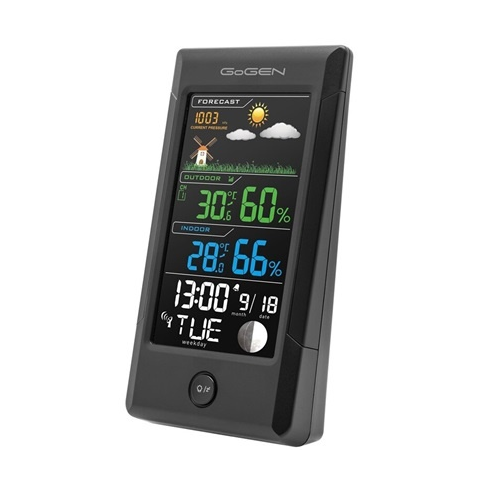 FUNKCIÓ Színes LCD kijelző Állítható kijelző háttérvilágítás Az idő DCF 77 rádiójel által vezérelt Vezeték nélküli érzékelő Időjárás előrejelzés Légköri nyomás Beltéri hőmérséklet és páratartalom Kültéri hőmérséklet és páratartalom Holdfázis D