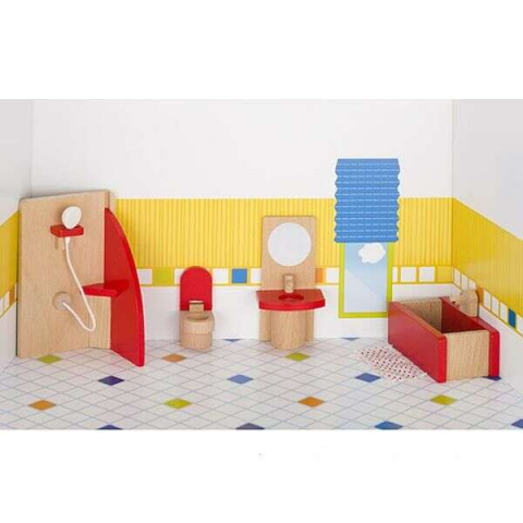 1 kép Goki Babaház bútor - piros fürdőszoba bútor kiegészítőkkel - goki