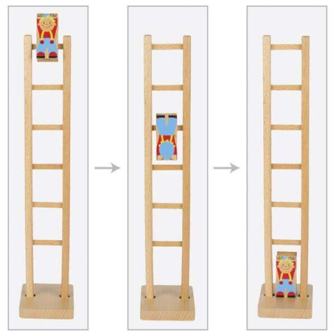 Goki bohóc a létrán ügyességi fajáték három éves kortól. A népi játékok körébe tartozik ez a megunhatatlan, egyszerű és mégis szórakoztató létrás bohóc figura. Ha a fa létrát megfordítjuk, a bohóc fentről szépen lassan