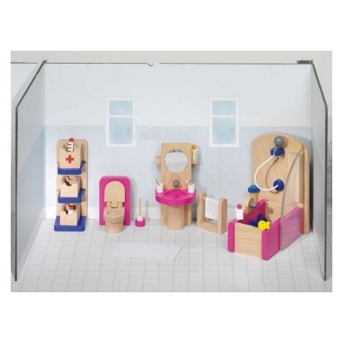 Goki fa babaház bútor, fürdőszoba 22 részes. A német Goki fajáték márka egyaránt kedvelt mind a gyerekek, mind a gyerekekkel foglalkozó óvodák és egyéb intézmények körében, a Goki játékok kidolgozottsága, színvilága és minősége saját véleményünk szerint i