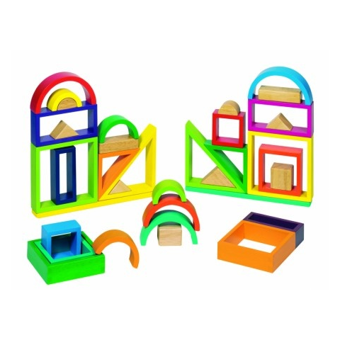 Szivárvány fa építőkocka fadobozban, 38 db 38 db-os fa építőkocka készlet a szokásostól eltérő, különleges formájú és harmónikus színösszeállítású fa építőkockákkal. Használaton kívül a tárolódobozában tarthatod. Anyaga: fa Méret: 32 x 24 x 3 cm
