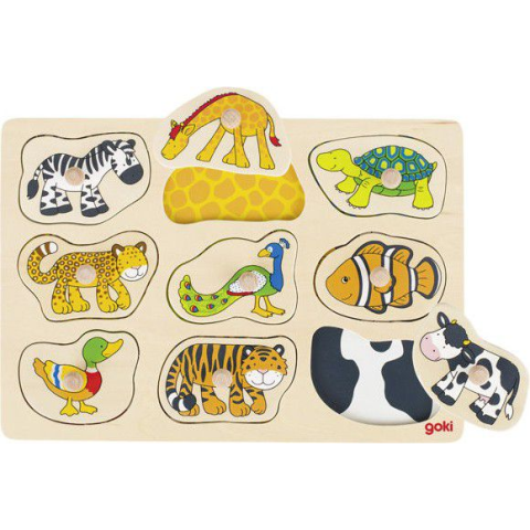 Goki Fa Forma Puzzle Fogantyúval, Állatok (GOKI-57585) puzzle, kirakós árgrafikon