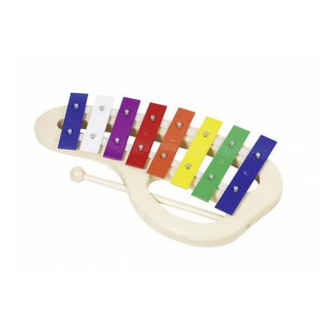Xilofon 8 hanggal, ütővel. Anyaga: fa és fém Méret: 31,5 cm
