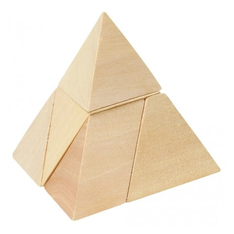 Fa logikai kirakó, piramis A térbeli fa logikai kirakók összeállítása nehezebb a síkbeli fa logikai kirakóknál. A piramis formát 5 db-ból állíthatod össze. Használaton kívül a fa logikai kirakó elemeit a mellékelt vászonzacskóban tárohatod. Anyaga: f