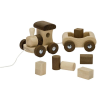 Húzogatós favonat egy mozdony és két vagon összeállításban 10 építőkockával, natúr színben. Anyaga: fa Méret: 37 x 10,5 x 10,5 cm