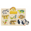 Fogantyús fa kirakó játék kicsiknek háttérképpel, 9 db-os. Milyen a boci bundája? És a zsiráfét ismered-e? Háttérképes, fogyantyús fa kirakó játék kedvelt állatfigurákkal. Anyaga: fa Méret: 30 x 21 cm