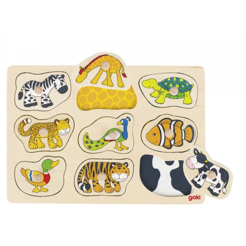 1 kép Goki Fogantyús fa kirakó háttérképpel, állatok