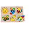 Fogantyús fa kirakó játék kicsiknek háttérképpel, 6 db-os. Esik az eső vagy süt a nap? Vajon mikor kell az esernyő? Nappal van vagy éjszaka? Háttérképes, fogantyús fa kirakó játék, ahol a kérdésekre megtalálod a választ. Anyaga: fa Méret: 30 x 21 cm