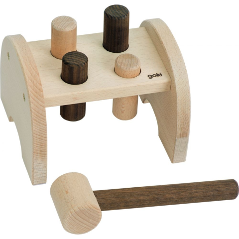Kalapáló pad 4 szeggel és egy kalapáccsal. Anyaga: fa Méret: 15,5 x 14 x 10,5 cm