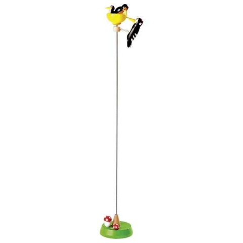 A népi játékok körébe tartozik ez a megunhatatlan, egyszerű és mégis szórakoztató rugós harkály. Billentsd meg és nézd, ahogy kopácsolva halad lefelé a fém rúdon. A harkályfiókák figyelik az édesanyjukat, míg az kopácsolva halad