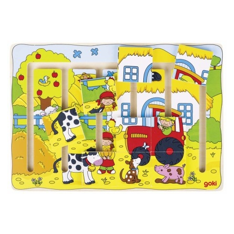 Tologatós fa kirakó játék, 9 db-os Tologasd a fa kirakó játék elemeit a helyükre, hogy összeállítsd a teljes képet és megelevenedjen előtted a tanyasi élet. Anyaga: fa Méret: 30 x 21 cm