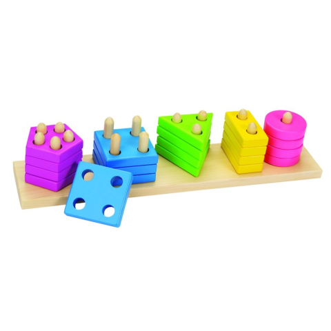 Toronyépítő szín és formarendező öt torony Anyaga: fa Méret: 35 x 7,5 x 7 cm