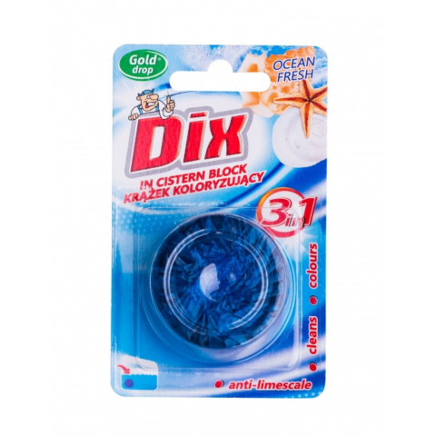 A Dix wc vízszínező egy hatékony tisztítószer, amely óceán illattal rendelkezik. Tulajdonságok: A vízszínező segít ellenőrizni a WC tartály vízszintjét. Amikor a vízszínezőt a tartályba helyezzük, a víz színe megváltozik. Ha a vízszint túl magas vagy