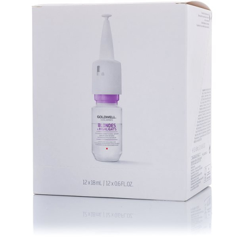 Hajszérum - szőke hajtípusra, fésülést könnyítő és sárgulás megelőző hatás, parabénmentes és szulfátmentes A GOLDWELL Dualsenses Blondes & Highlights Intensive Conditioning Serum 12 × 18 ml védő hajszérum tökéletes ápolást kínál a hajnak, fokozza a szín élénkségét és megkönnyíti a fésülést. Semlegesíti