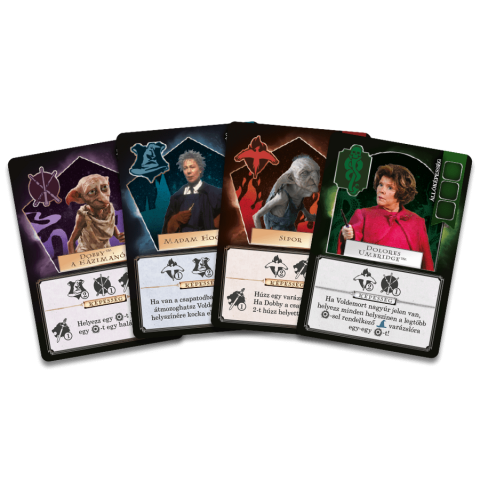 Növeld csapataid létszámát - és a változatosságot! A Roxforthoz Madam Hook, Dumbledore seregéhez Dobby, míg a Főnix rendjéhez Sipor csatlakozik - viszont a Halálfalók is erősödnek Umbridge-nak köszönhetően! A promókártyák önmagukban nem vásárolhatók