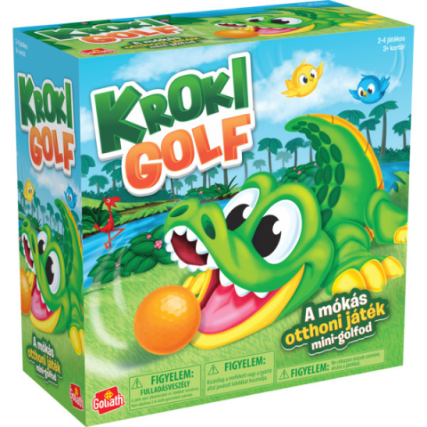 Egy krokodil, ami labdákra éhezik!A Kroki Golf egy igazán vidám és mókás, otthoni mini-golf játék. Célja, hogy a színes labdákat a nyitott szájú Kroki szájába irányítsák a gyerekek a flamingó formájú ütő segítségével. Ha eléri a kroki farkát, visszadobja nekik a labdát. A hátán lévő színes kis madárkák számolják majd a pontokat.A játék fejleszti a szem-kéz koordinációt és a motoros készségeket, emellett ez a klasszikus mini-golf játék állat könt