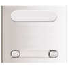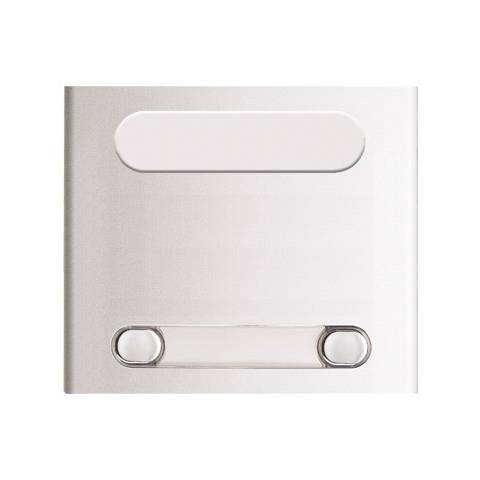 2 nyomógombos, 2 soros kültéri panel névtáblával és információs sávval. - Erős, préselt alumínium burkolat. - 2 db nyomógomb. - Nyomógombok elrendezése: egymás alatt, két sorban. - Információs sáv és névtábla, háttérvilágítással. - Egy modulnyi helyet foglal. - Mérete: 134mm x 116mm. - ISO 9001:2000 minősítés.