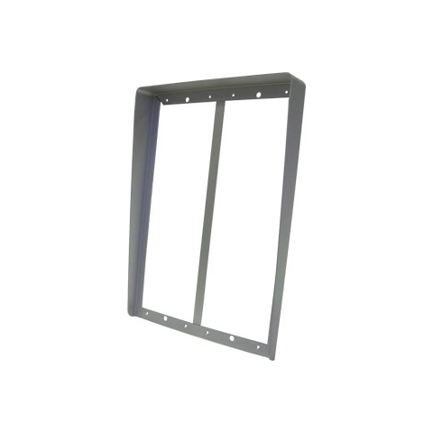 Dupla esővédő keret 3 modulos süllyesztett kültériegységekhez	- Erős, préselt alumínium szerkezet.	- Segítségével 2 db hárommodulos süllyesztett kültériegység szerelhető egymás mellé.	- 3x2 modul méretű.	- Mérete: 268mm x 382mm.	- Moduláris kaputelefonokhoz használható.	- ISO 9001:2000 minősítés.