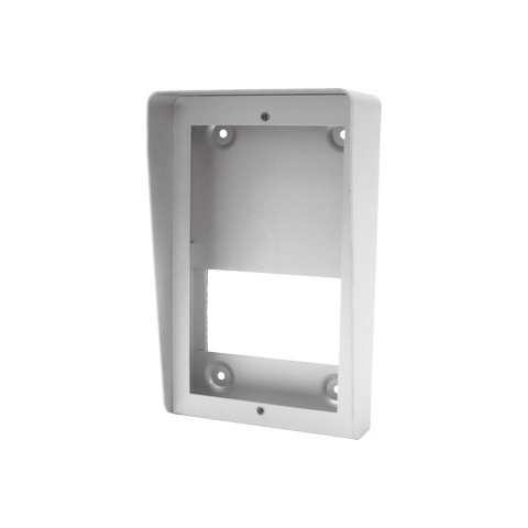 Falonkívüli doboz esővédővel kompakt modul méretű nyomógombos kültériegységekhez - Erős, préselt alumínium szerkezet. - Használatával a kompakt modul méretű nyomógombos kültériegységek süllyesztett doboz nélkül szerelhetők. - 4+n vezetékes audio kaputelefonokhoz használható. - Egy kompakt modul méretű. - Mérete: 134mm x 240mm x 32mm. - Alábbiakhoz: Golmar 4130/AL, 4140/AL, 4150/AL, 4260/AL, 4280/AL, 4210/AL. - ISO 9001:2000 minősítés.