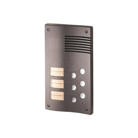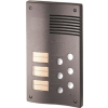 6 db kiegészítő nyomógomb 4+n vezetékes vandálbiztos és vízmentes audiós kültériegységek bővítéséhez A rendkívül erős, alumínium szerkezetű, vandálbiztos és vízmentes kültériegység a szükséges kiegészítőkkel falonkívül, süllyesztve és esővédővel is elhelyezhető. További tulajdonságai - Erős, öntött alumínium burkolatú kiegészítő nyomógombos kültériegység, barna színű. - Fém nyomógombok. - 4+n vezetékes audio kaputelefonokhoz. - Az aláb