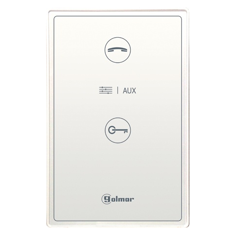 Audiós beltériegység kézibeszélő nélkül Golmar GB2 kétvezetékes rendszerekhez A kaputelefon beltéri egység tulajdonságai Esztétikus ABS műanyag ház Golmar GB2 kétvezetékes rendszerekhez használható Kapacitív érintőgombok, akusztikus visszajelzéssel DIP kapcsolókkal programozható Kétirányú, full duplex audió kommunikáció Ne zavarj funkció, fényjelzéssel Ajtócsengő nyomógomb bemenet Két szintű csengetés és beszéd hangerő Intercom funkc