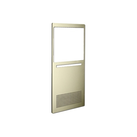 Arany színű előlap Golmar SZENA Plus beltériegységhez	- Műanyag, esztétikus, arany színű előlap.	- Golmar SZENA Plus beltériegységhez használható.	- Egyszerűen és gyorsan cserélhető.	- Bepattintható kivitel, szerszám, csavar nélkül rögzíthető.	- Méretei: 92mm x 285mm x 8mm.