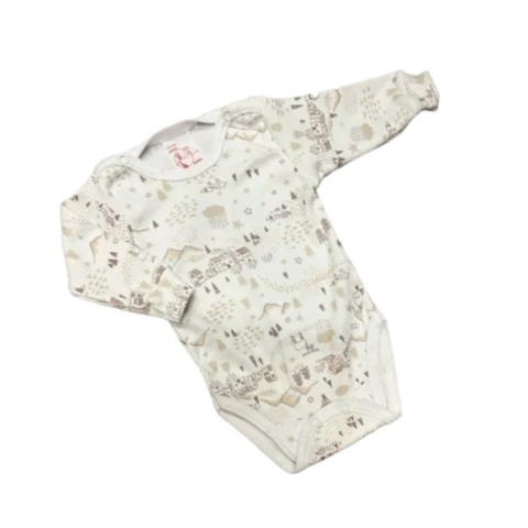 1 kép Gólyahír 2 Méretes Hosszú Ujjú Body - Fehér/Bézs Házikós - 56