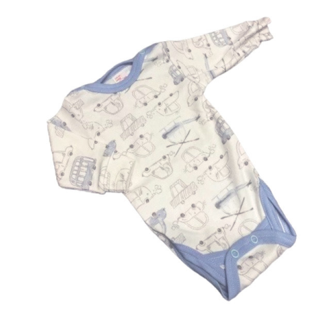 1 kép Gólyahír 2 Méretes Hosszú Ujjú Body - Fehér/Bézs/Kék Autós - 74