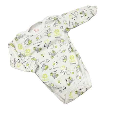 1 kép Gólyahír 2 Méretes Hosszú Ujjú Body - Fehér/Kék/Zöld Méhecskés - 56