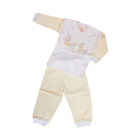 2 részes hosszú ujjú pamut pizsama, mely megfelelő választás egy átlagos hőmérsékletű lakásba gyermekünk számára. Anyag: 100% pamut 30°fokon mosható Magyar termék
