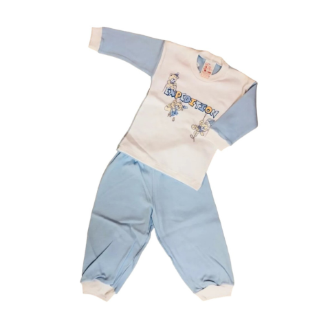 2 részes hosszú ujjú pamut pizsama, mely megfelelő választás egy átlagos hőmérsékletű lakásba gyermekünk számára. Anyag: 100% pamut 30°fokon mosható Magyar termék