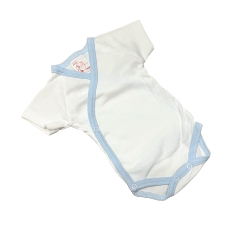 1 kép Gólyahír Réklis Rövid Ujjú Body - Fehér/Kék Szegéllyel - 68
