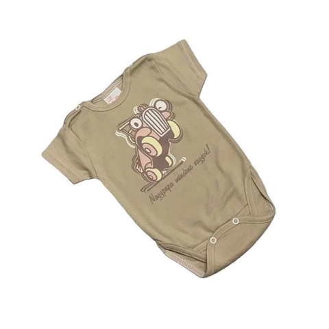 1 kép Gólyahír Rövid Ujjú Body Nyomott Mintás - Mogyoró Autós - 68