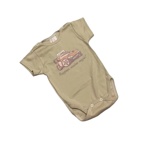 1 kép Gólyahír Rövid Ujjú Body Nyomott Mintás - Mogyoró Sportautós - 68