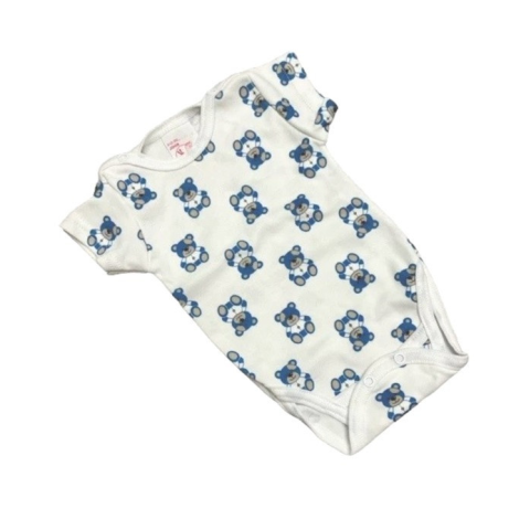 1 kép Gólyahír Rövid Ujjú Pamut Body - Fehér/Kék Macis - 80