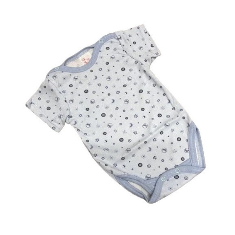 1 kép Gólyahír Rövid Ujjú Pamut Body - Kék Holdas - 92