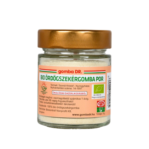 gombaDR. Bio Ördögszekér gomba őrlemény (Pleurotus eryngii)– 30 g Származási hely: EU / Magyarország. NÉBIH nyilvántartási száma:14-1897 Magyar, ellenőrzött, bio termesztésből származó ördögszekérgomba (Pleurotus eryngii) termőtesteinek őrleményét tarta