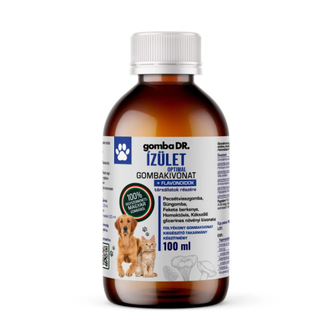 gomba DR. Ízület Optimal gombakivonat – társállatok részére 100 ml/50 ml kiegészítő takarmány készítmény Származási hely: EU / Magyarország. Magyarországon, ellenőrzött körülmények között* termesztett pecsétviaszgomba (Ganoderma lucidum) és közönséges s