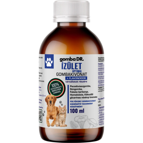 A Gomba DR. ÍZÜLET OPTIMAL folyékony gombakivonat szintetikus adalékoktól mentes, gyógynövényekkel és növényi glicerinben oldva, EU-szabványok szerint készül. 100%-ban természetes, magyar termék.Miben segíthet az ÍZÜLET OPTIMAL gombakivonat kedvencednek?gyulladásgátló és antioxidáns vegyületei hozzájárulnak a gyulladásos és degeneratív ízületi betegségek panaszainak enyhítéséhezkarbantartja az ízületeketvédelmet biztosít a porckopás ellenmérsék