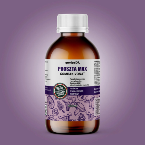 gomba DR. Proszta Max gombakivonat – 100 ml Származási hely: EU / Magyarország. Magyarországon, ellenőrzött körülmények között* termesztett pecsétviaszgomba (Ganoderma lucidum), vörös rovarrontó gomba** (Cordyceps militaris) kivonatainak, csalángyökér ki